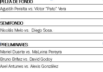 El festival, cuyo inicio está previsto para las 20. 30, será fiscalizado por la ACiMBox. El combate central de la noche tendrá como protagonistas al posadeño Agustín Peralta y al paraguayo Víctor “Pato” Vera.