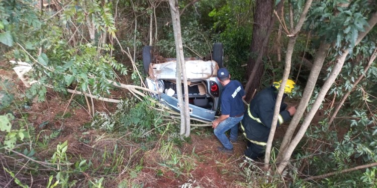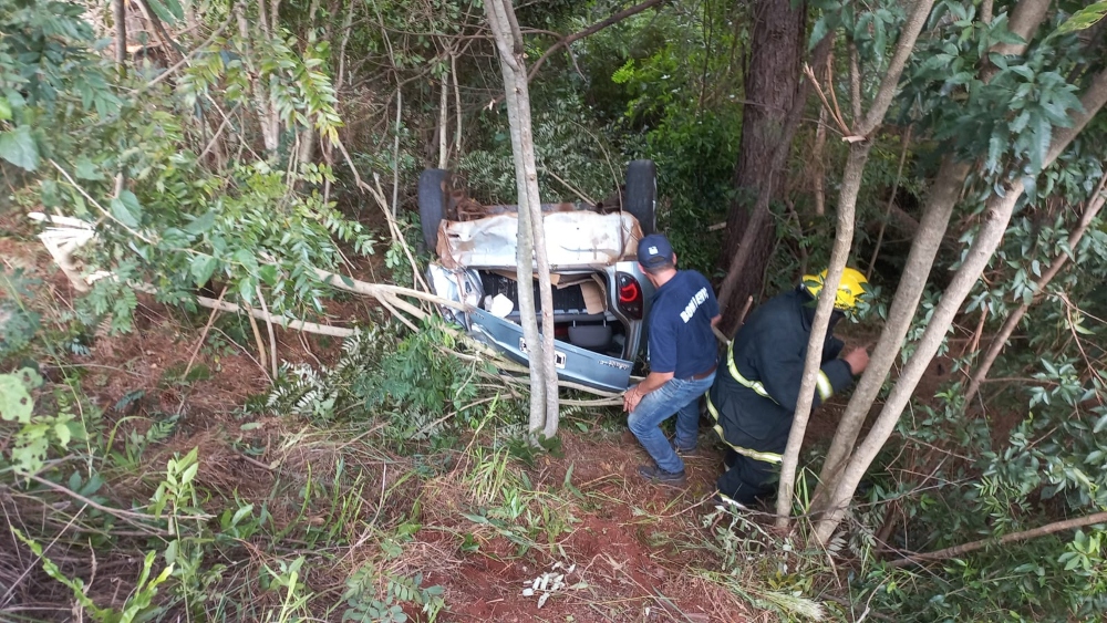 Por causas que se tratan de establecer un vehículo marca CHEVROLET despistó y terminó en posición invertida en una zanja cubierta por malezas y arbustos.