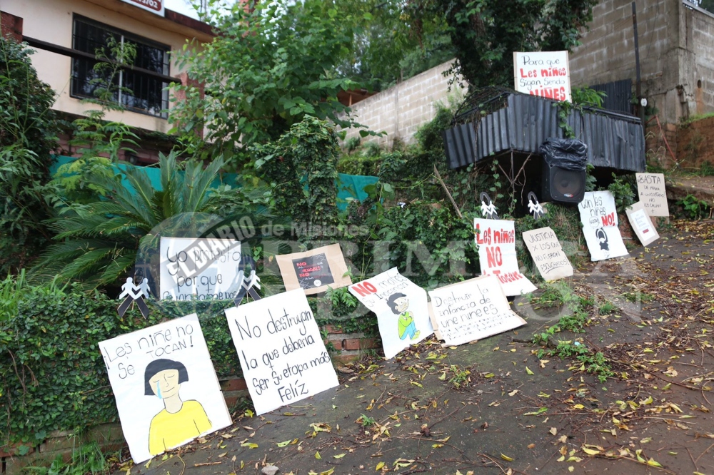 Se concentraron  frente a la pizzería “Las Porteñas” (lugar que sería utilizado para alojar a los menores captados), ubicada en la calle Ralph Haupt 1768, y luego se movilizaron hasta  el Juzgado de Instrucción Penal N° 1 y Defensoría Penal N° 1 de Oberá.