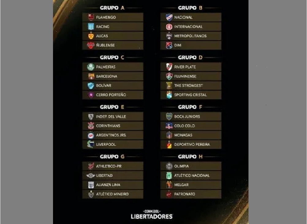 En el grupo D estará el conjunto “Millonario”, donde no la tendrá fácil ya que está junto a Fluminense de Brasil, Sporting Cristal de Perú y The Strongest de Bolivia, por lo que deberá viajar a la altura y a suelo brasileño, nada más que en Río de Janeiro.