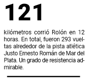 Fueron un total de 293 vueltas alrededor de la pista en casi 12 horas para Rolón, que compartió podio con las uruguayas Andrea Pereira (que fue la ganadora de la prueba) y Carla Dadomo. Por equipos, en tanto, la Selección Argentina se subió a lo más alto por sumatoria de puntos.