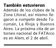 Organizado por la Asociación Civil Club Social y Deportivo Tiro con Arco Corrientes (TCACO), el sábado se realizó la competencia en la modalidad 3D y el domingo fue el turno del Juego de Campo, ambos parte del calendario de la Federación Argentina de Tiro con Arco (FATArco) para la zona Litoral.