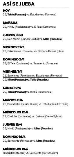 En efecto, en la última fecha, el Oriental “atendió” a domicilio a los chaqueños y se impuso por 62-53 en el estadio Norberto “Coco” Viñetta. Y todavía hay más: en la previa de ese partido y en el juego que cerró la primera ronda, Tokio también venció a Cultural, pero en Posadas, por 98-68. Así es que logró encolumnarse como el único líder del grupo.