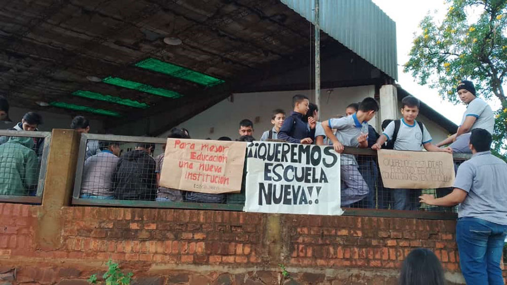 Tras la toma de la EPET 33 de Puerto Libertad y la sentada protagonizada por los chicos de la EPET 1 en Posadas, cansados de tolerar las malas condiciones edilicias, los alumnos de la EPET 54 ubicada en el Kilómetro 2 de Eldorado, iniciaron esta mañana una medida de protesta para reclamar un nuevo edificio para esta institución educativa.