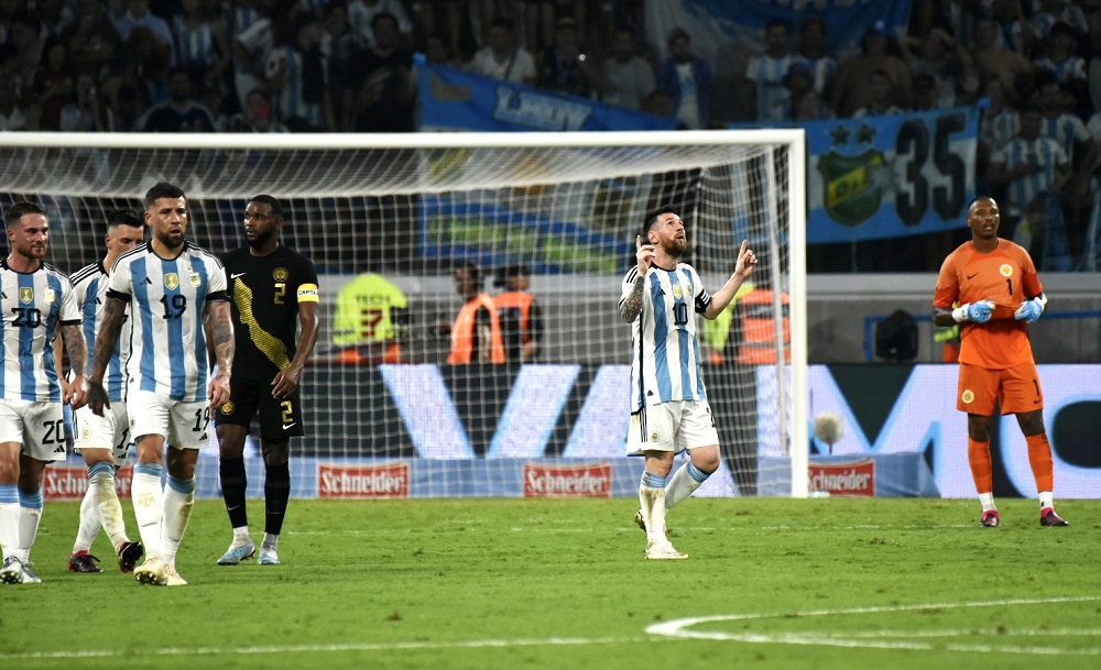 El astro rosarino, máximo anotador histórico de la Selección y primer jugador en alcanzar una cifra goleadora de tres dígitos, anotó a los 20, 33 y 37 minutos.