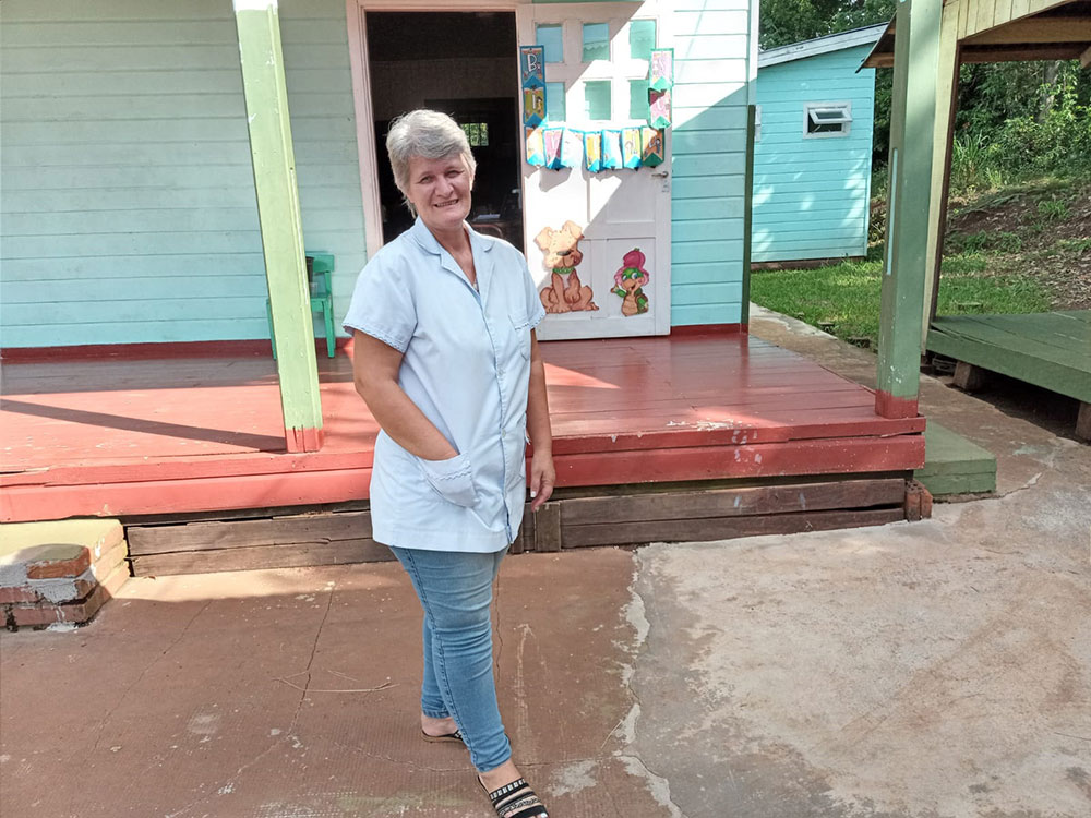 “Soy oriunda de Oberá, nacida en Los Helechos. Hace 27 años que soy docente, y cuando me recibí, mis papás compraron una chacra en Andresito, entonces como ellos se venían a vivir acá me vine con ellos y a trabajar”, comenzó narrando. Desde ese entonces, trabaja en un aula satélite en el Paraje Deseado donde hoy son 15 alumnos los que cursan desde nivel inicial hasta séptimo grado.