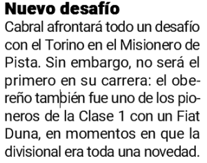 “También recibimos el impulso de un grupo de amantes del Torino que suelen girar en Posadas. Creo que los que practicamos este deporte también nos debemos al público, así que ese factor también fue importante para traer el Torino al TC4000. Ahora los fanáticos de la marca van a tener a quién alentar”, sonrió Cabral.