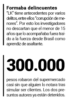 El conocido como “Lk” también es sospechoso de un asalto ocurrido el 26 de enero en la misma localidad, donde se cree que se refugiaba con un compatriota tras ser buscado por la Policía de Brasil en su país. Ese caso ya tiene a un joven de la misma nacionalidad detenido por el golpe en el cual un dúo se llevó 300 mil pesos de una caja registradora de un supermercado.