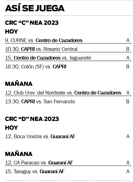 Por su parte, Guaraní Antonio Franco jugará el CRC “D” y debutará hoy a las 12 frente a Boca Unidos de Corrientes.