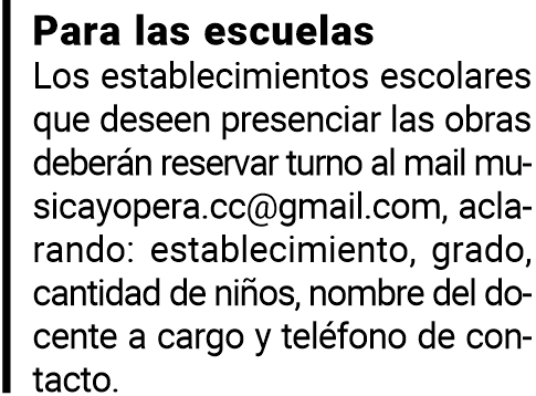 Funciones: escuelas y público (ingreso por orden de llegada).