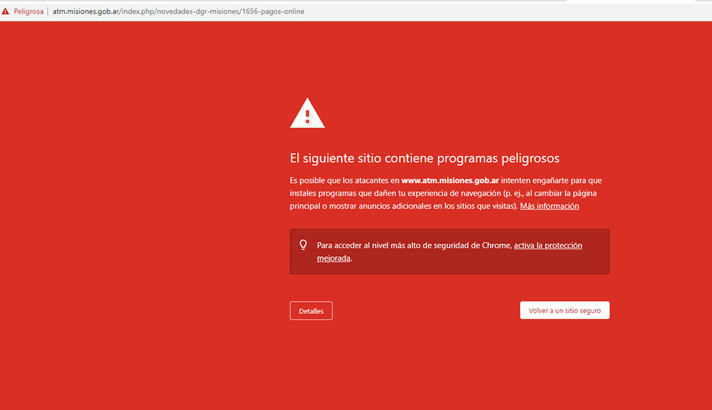 En conclusión, todos los dominios “gob” tienen el mismo problema. Los que tienen “gov” están funcionando sin problema. Misiones ya efectuó el reclamo a Google para que elimine esa alerta “ya que Misiones no tiene infectado”.
