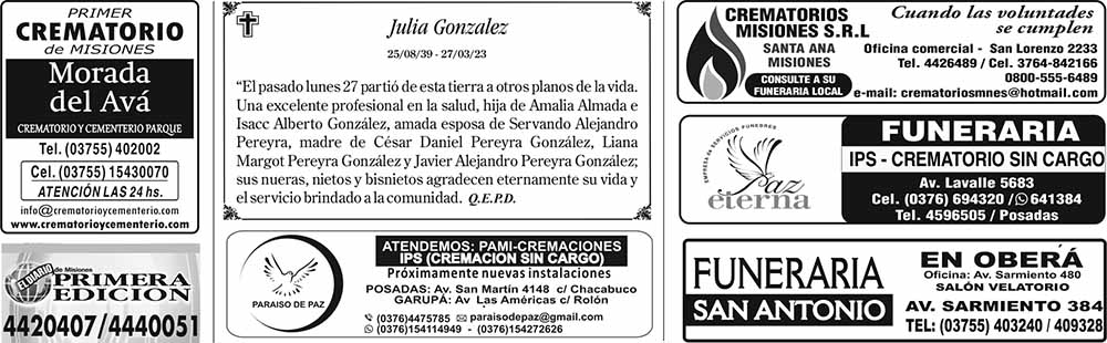 Fúnebres del Domingo 2 de Abril de 2023