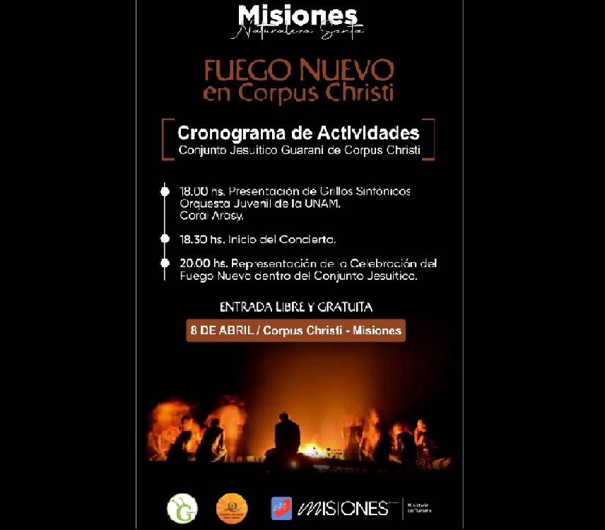 Luego a las 20, se llevará adelante la representación de “Fuego Nuevo” dentro del Conjunto Jesuítico de Corpus Christi. La entrada el libre y gratuita