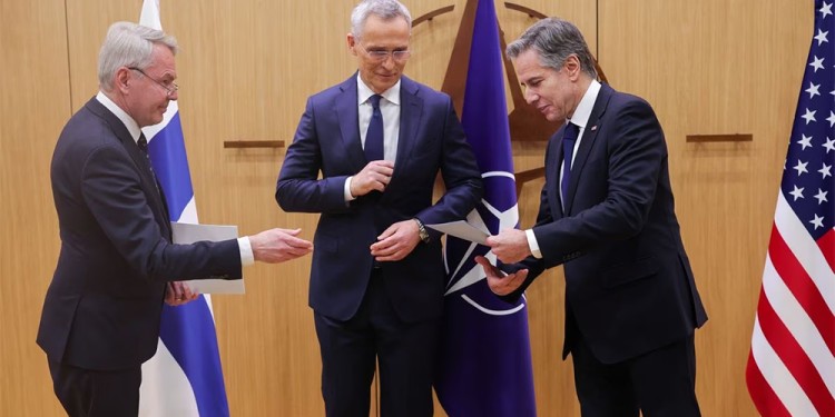 El Ministro de Relaciones Exteriores de Finlandia, Pekka Haavisto, completó el proceso de adhesión al entregar un documento oficial al Secretario de Estado de los Estados Unidos, Antony Blinken, en la sede de la OTAN.