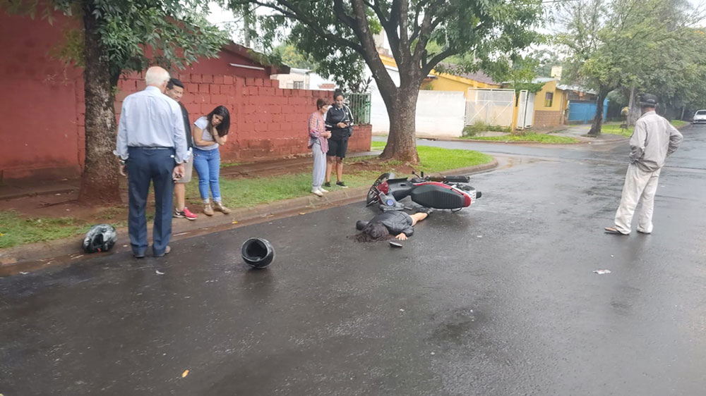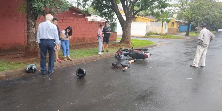 Durante esta mañana lluviosa, en inmediaciones a la chacra 92 de Posadas, en calle 95 casi avenida López y Planes, una mujer de 38 años resultó herida tras caer de su moto.