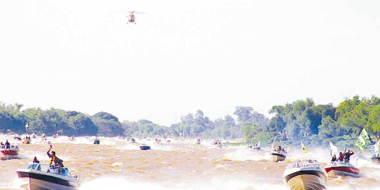 En la ciudad corrió la versión de que en esta ocasión la partida de las 1.150 lanchas se haría a baja velocidad, al menos en la zona de la costanera, donde el socavamiento que produjo el río derivó en el hundimiento del piso. Eso tendría como finalidad evitar el fuerte oleaje, que podría agravar el daño sobre la plaza que está junto al denominado “flotante” de la Prefectura.