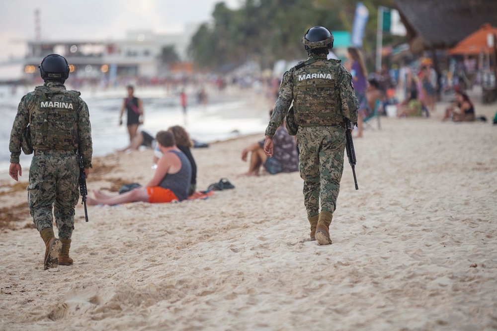 En la primera, unos militares patrullan las playas de uno de los paraísos turísticos de México. Del Caribe al Pacífico, de Cancún a Acapulco, la consigna es la misma, proteger a los visitantes en plena temporada vacacional después de que la Semana Santa empezara con ocho asesinatos en esos dos destinos.
