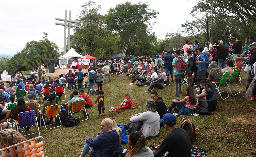 EXPERIENCIA ÚNICA. Entre fieles y turistas, el Cerro monje de San Javier concentró cientos de personas el Viernes Santo para vivir el Vía Crucis.