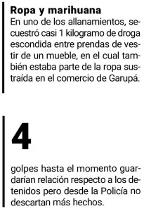 Fuentes consultadas por PRIMERA EDICIÓN confirmaron que los operativos se realizaron ayer desde las 7 por orden del juez Marcelo Cardozo quien autorizó tres allanamientos de viviendas en las cuales se creía que podrían estar los sospechosos o elementos relacionados a los robos en tres locales comerciales y en una vivienda.