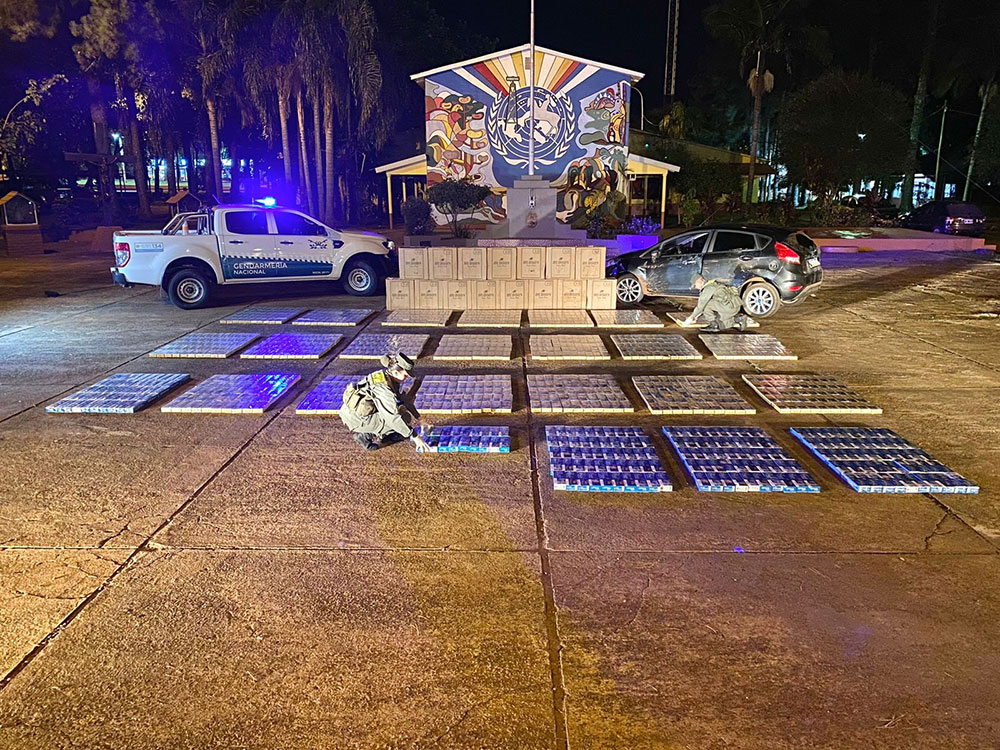 Ante el imprevisto, los gendarmes iniciaron un procedimiento de búsqueda controlada y, kilómetros después, más precisamente a la altura del paraje Taji Potiy, localizaron el automóvil Ford Fiesta abandonado con las puertas abiertas y, a simple vista, pudieron reconocer una gran cantidad de cigarrillos en su interior.