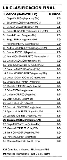 En pocas palabras, Joaquín ratificó que el balance tras este nuevo certamen es más que positivo. “Pese a que bajé un poquito de ELO, el balance es positivo por el nivel de las partidas que pude jugar, me voy conforme de cara a lo que se viene”, dijo Jiménez.