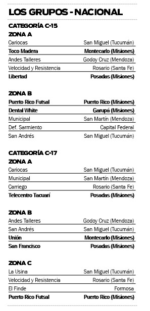 De cara al Nacional que arrancará hoy, en la categoría C-17 Puerto Rico compartirá grupo con El Finde de Formosa, Velocidad y Resistencia de Rosario y La Usina de Tucumán.
