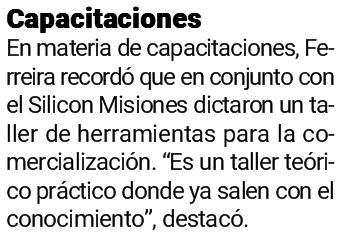 En materia de capacitaciones, Ferreira recordó que en conjunto con el Silicon Misiones dictaron un taller de herramientas para la comercialización. “Fuimos a lo básico, al Whatsapp Business, es un taller teórico práctico donde ya salen con el conocimiento y el Whatsapp para la venta”, destacó.