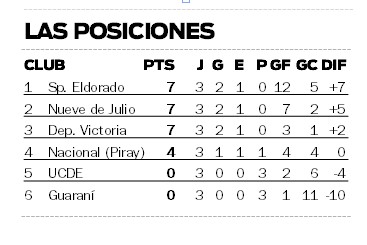 Por último, Nueve de Julio le dio otro golpe a Unión Cultural y Deportiva Eldorado al vencerlo por 3-1. Con el nuevo triunfo también se sumó a la punta del campeonato.