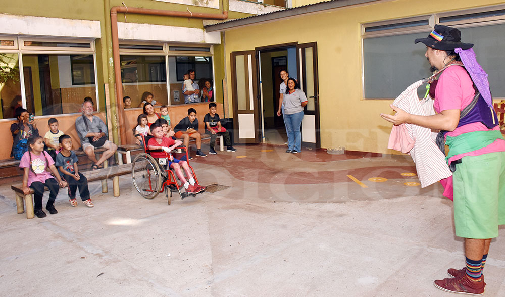 Algunos niños y niñas que permanecen en el Hospital se reunieron junto a sus madres para presenciar el “Teatrín viajero, zapateo y zarandeo”, que tuvo como protagonistas a dos simpáticos títeres que los hicieron reír e interactuar durante la presentación.