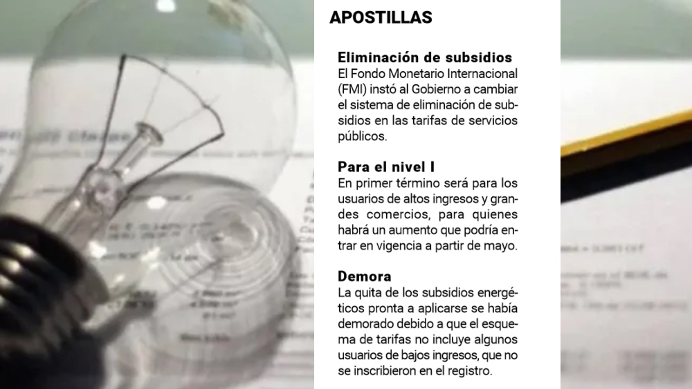 Hay que recordar que el organismo financiero internacional instó al Gobierno a cambiar el sistema de eliminación de subsidios en las tarifas de los servicios públicos para cumplir con sus metas.