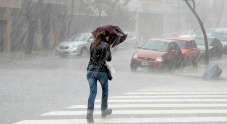 El área será afectada por lluvias y tormentas de variada intensidad, algunas localmente fuertes, y se espera que estén acompañadas por “intensas ráfagas, ocasional caída de granizo, fuerte actividad eléctrica y abundante caída de agua en cortos períodos”, precisó el organismo nacional.