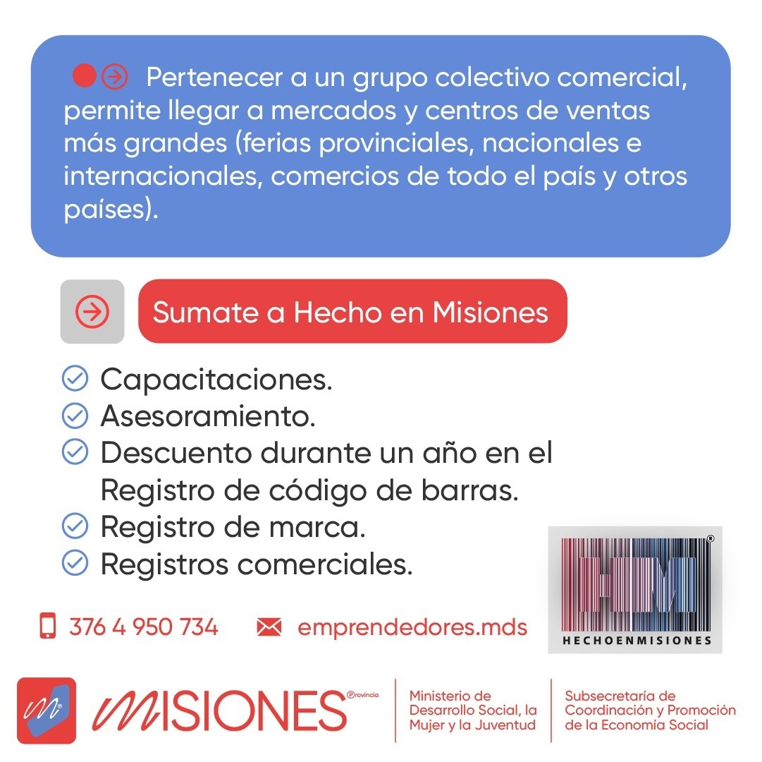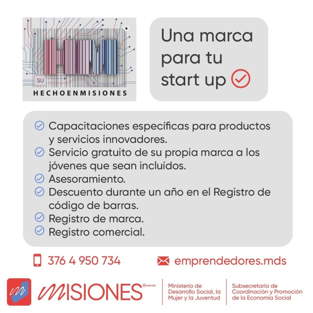 Es una nueva iniciativa de la Subsecretaría que busca incluir a los jóvenes en el mercado laboral, protegerlos y ayudarlos a poder realizar sus emprendimientos o ideas. Esta línea de “Hecho” en Misiones contará con una serie de capacitaciones específicas para productos y servicios innovadores. Desde el área, ofrecen el servicio gratuito de su propia marca a los jóvenes que sean incluidos.
