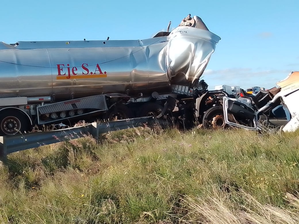 Un siniestro vial que involucró a dos camiones se cobró la vida de dos personas . Según se informó, el hecho ocurrió este viernes sobre la ruta nacional Nº14 en cercanías a la localidad correntina de Santo Tomé cuando por causas que se tratan de establecer en la zona denominada curva del Cuay Grandecolisionaron un camión que transportaba postes de madera y un camión cisterna que trasladaba combustible.