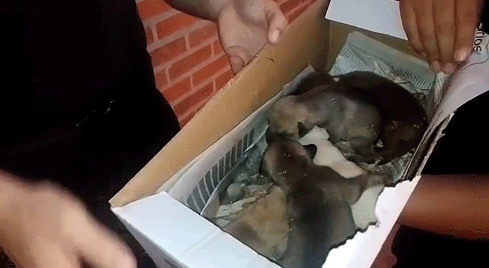 Inmediatamente, una patrulla policial se acercó al lugar, realizó los rastrillajes pertinentes y alarmados sobre los particulares ruidos, ubicaron una bolsa atada a un palo con cuatro crías de perros recién nacidos.