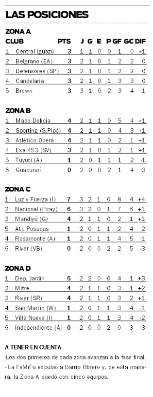 Mandiyú de Garuhapé vs. Rosamonte de Apóstoles y Atlético Posadas vs. River de Villa Bonita completarán la Zona C.