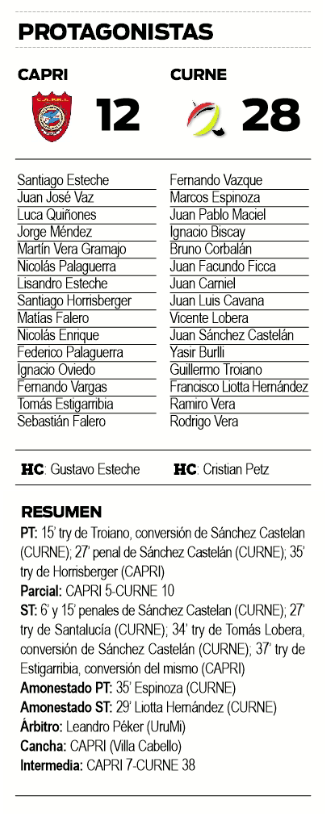 Sin ser superior, CURNE sacó una clara y abultada ventaja ante un CAPRI que perdió muchas pelotas en el contacto y ofreció espacios que fueron bien aprovechados por el rival.