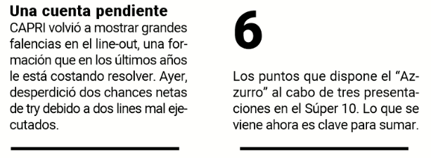 Encima, en dos jugadas rápidas con pelotas bien jugadas desde el scrum, los ingresados Franco Santalucía, a los 27 minutos, y Tomás Lobera, a los 34, apoyaron sendos tries que hicieron inalcanzable la diferencia para CAPRI, que a esas altura ya sentía el desgaste psicológico que significa buscar y no encontrar y, para colmo, pagar con puntos en contra.