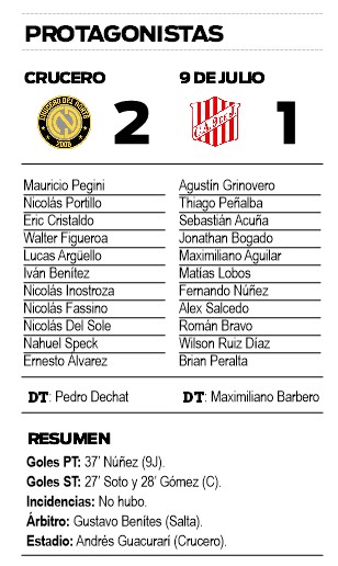 Partidos chivos sí los hay y el de este domingo en Santa Inés fue uno de esos. Crucero del Norte se impuso por 2-1 a 9 de Julio de Rafaela y cortó la sequía de triunfos en el Federal A, pero volvió a quedar en deuda futbolística.