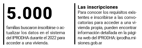 Sumado a una población cada vez más joven, con numerosos hijos y una situación financiera que no mejora, en Misiones “tuvimos un récord de inscripciones el año pasado”. Las postulaciones no solo se concentraron en Posadas, sino que “fue en toda la provincia”, señaló Joulia. Durante el 2022, precisó que “5.000 familias accedieron a la página para actualizar su ficha o inscribirse en el Instituto”. En comparación, “veníamos de un promedio de unas dos mil por año”, adhirió.