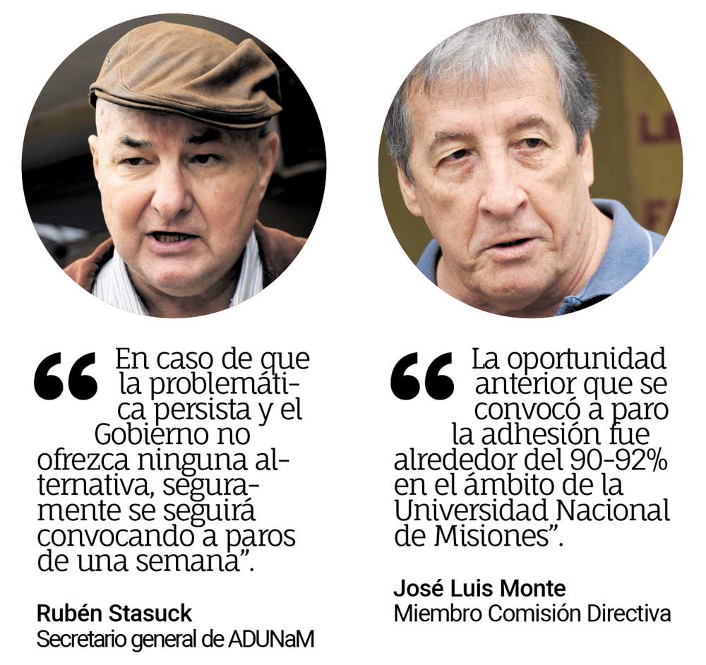 Por su parte, José Luis Monte, integrante de la Comisión Directiva, sostuvo: “La oportunidad anterior que se convocó a paro la adhesión fue alrededor del 90-92% en el ámbito de la Universidad Nacional de Misiones y a nivel nacional también, ronda alrededor del 80-85%”.