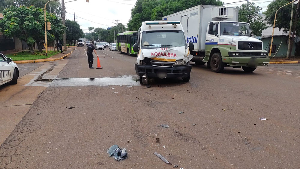 El conductor de la ambulancia iba acompañado de una mujer, quien fue la única que resultó herida. Aún por motivos que faltan esclarecer, el impacto ocurrió cuando el móvil intentó trasponer la intersección con avenida Las Heras, sobre la que transitaba el auto particular.