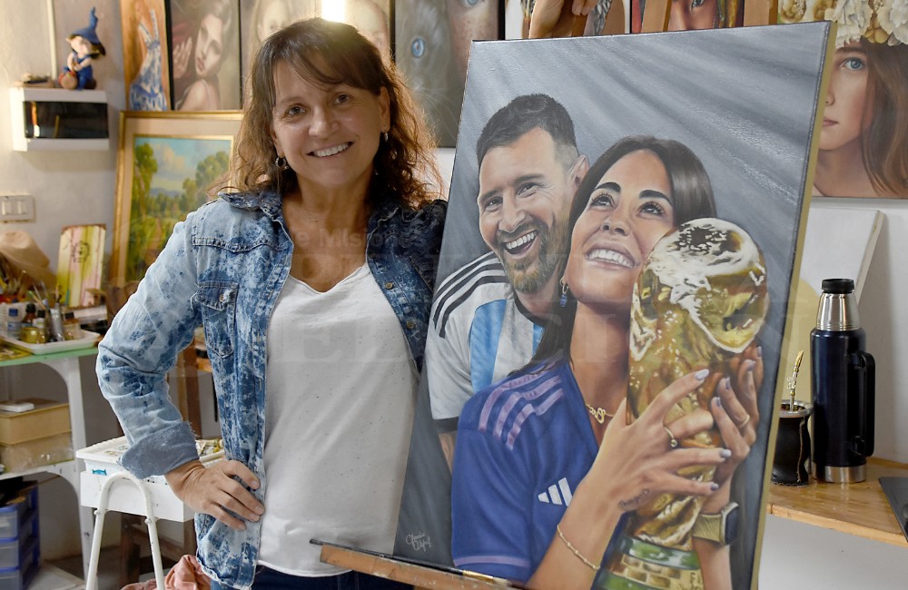 A cuatro meses de la épica conquista de la selección argentina, la fiebre mundialista continúa. Claudia Olefnik, artista plástica misionera realizó un cuadro donde se ve a Antonela Roccuzzo con la copa del mundo en sus manos junto al astro rosarino. El objetivo es que la obra pueda llegar a manos de los protagonistas.