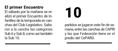 Además, el sábado por la mañana se realizó el primer Encuentro de Infantiles de la temporada en canchas del Club Legislativo. Jugaron las categorías Sub 6 y Sub 8, como así también la Sub 10.