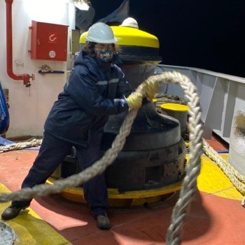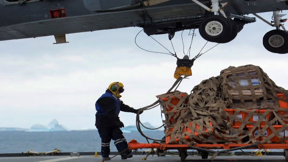 Desde el puente de comando del “Almirante Irízar”, la Cabo Primero Aguirre fue testigo de cómo gradualmente, navegando hacia el sur en las gélidas aguas antárticas, el día se volvía interminable hasta no existir la noche. De todos modos, en ese contexto la luz es aprovechada para realizar operaciones aéreas con los helicópteros Sea King embarcados en el buque.