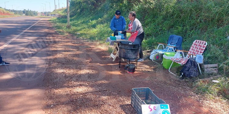 Buscando salida a la situación económica agobiante María Angélica Forpaniski y su hijo Héctor Da Silva, un joven de 27 que es discapacitado motriz, decidieron instalarse a la vera de la ruta nacional 14 con un puesto de venta de choripán.