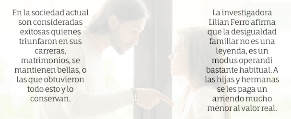 En este sentido es interesante lo expresado por Lilian Ferro investigadora feminista que trabaja intensamente en generar modelos de medición de las inequidades de la estructura agraria con perspectiva histórica y de género, ella afirma que la desigualdad familiar no es una leyenda, es un modus operandi bastante habitual. A las hijas y hermanas mujeres se les paga un arriendo mucho menor al valor real, o les pagan estudios y consideran entonces amortizada su parte en la propiedad o se ven presionadas y obligadas a vender su parte a sus hermanos varones, estas presiones suelen ser doblemente violentas pues no solo afectan los derechos económicos o patrimoniales dentro de las empresas sino también la afectividad de estas mujeres que viven esta discriminación por parte de su entorno más íntimo, la familia.