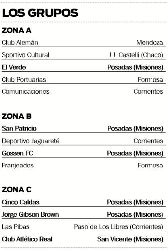 En la Zona A, en cambio, las únicas misioneras serán las chicas de El Verde, las campeonas posadeñas, que debutarán hoy desde las 21.30 ante Portuarias de Formosa. “La verdad es que tenemos un grupo complicado, son todos equipos de afuera y no sabemos a lo que nos vamos a enfrentar, pero las expectativas son buenas, creo que tenemos chances de pelearla y vamos a hacer lo mejor posible”, explicó Pamela González, delegada de El Verde FC, a EL DEPOR.