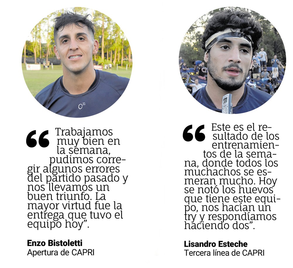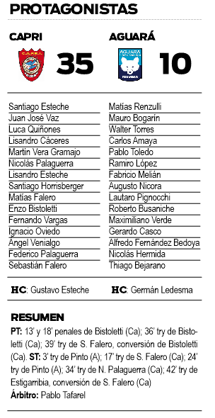 Luego de la caída ante CURNE, en un partido que tenía controlado, CAPRI entendió que no podía cometer los mismos errores, se propuso sumar ante Aguará y ayer lo consiguió en Villa Cabello con una clara victoria por 35 a 10, alcanzando el punto bonus ofensivo para escalar en las posiciones.