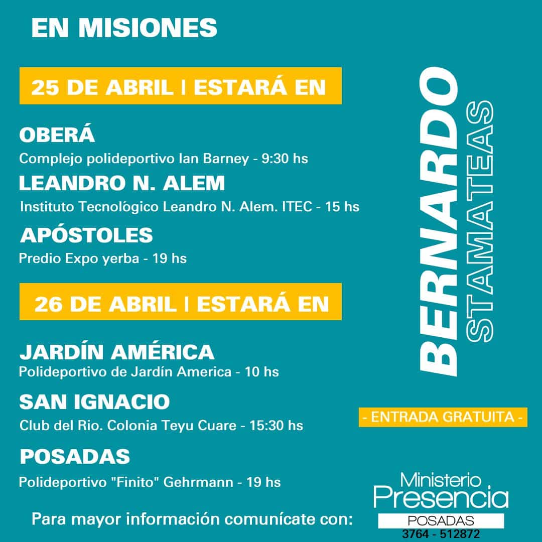 Con esta premisa, el licenciado en teología y psicología, terapeuta familiar y sexólogo clínico, Bernardo Stamateas llegó a Misiones para presentar su nuevo libro “Emociones nutritivas”, y brindar charlas gratuitas en Posadas, Apóstoles, Alem, Oberá, Jardín América y San Ignacio.