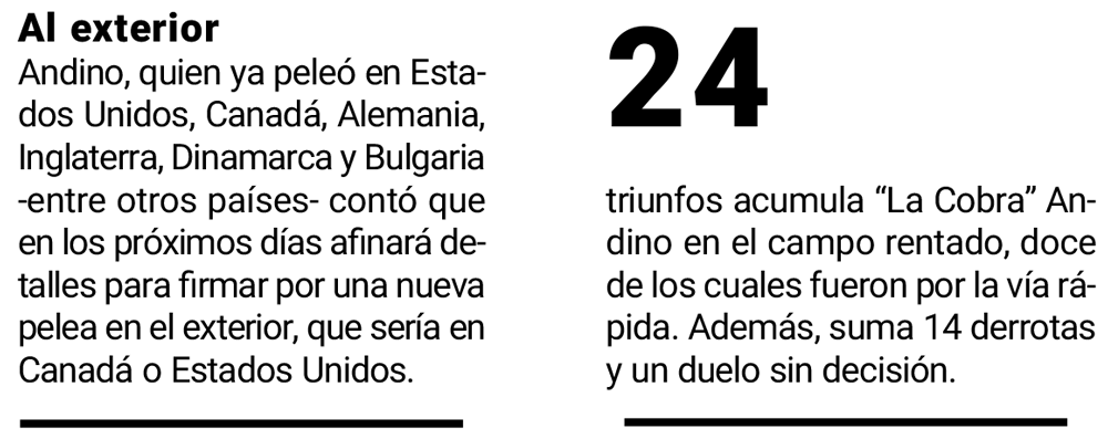 El púgil misionero, que venía de una derrota en los Estados Unidos ante el norteamericano Deon Nicholson, logró recomponerse ante un rival que se plantó en cada round. Finalmente, en las tarjetas, los jueces entendieron que Andino había sido superior y le dieron la victoria por decisión unánime.
